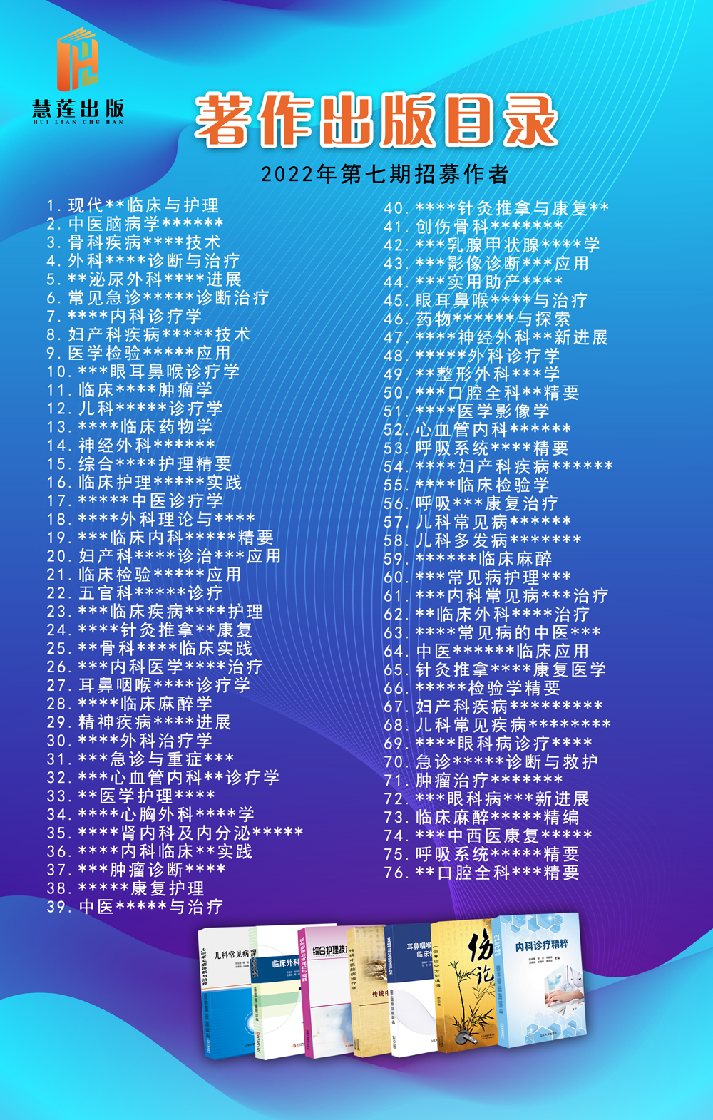 【慧蓮出版】——醫(yī)學(xué)類專著招募作者